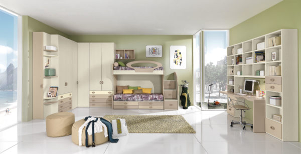 Le finiture delle camerette per ragazzi sono disponibili in vari colori e materiali.