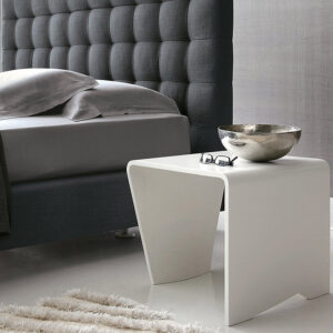 Tavolino monoscocca curvato in poliuretano strutturale disponibile in tutti i colori laccati opachi. -
