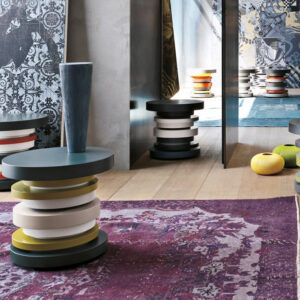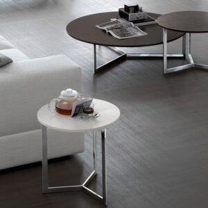 Tavolino con piano disponibile in legno tutti i colori laccati opachi, laccati lucidi e laccati poro aperto. Struttura in metallo cromato. -