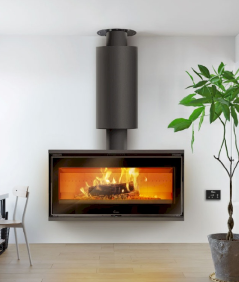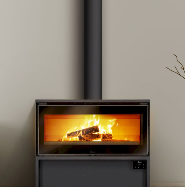 Innovativo concetto di stufa dal design moderno con sistema di ventilazione integrato tramite turbina che possiamo regolare e anche spegnere (Silence Mode). Disponibile in 3 misure con versione legnaia o da muro (sospeso al muro)